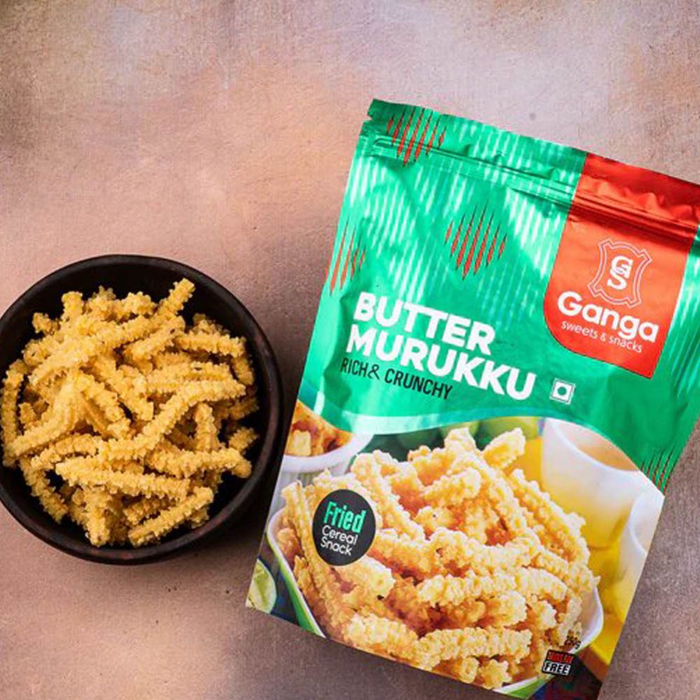 Ganga Sweets Butter Murukku is a traditional South Indian snack known for its crispy, crunchy texture and rich buttery flavor. Murukku is made using a mixture of rice flour and chickpea flour, combined with spices, and deep-fried to create a light and crispy snack. The addition of butter gives it a rich and smooth texture, making it a favorite among those who enjoy savory, buttery snacks. This snack is commonly served during festive occasions like Diwali, or simply enjoyed as a tea-time treat.