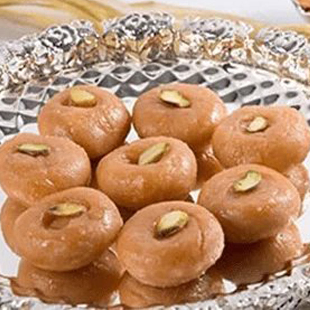 A2B Badusha is a classic Indian sweet with a crisp, flaky exterior and a soft, slightly chewy interior, made from refined wheat flour, ghee, and sugar. The dough is deep-fried, then soaked in sugar syrup, resulting in a rich, melt-in-the-mouth treat that balances sweetness with the flavor of ghee, making it a festive favorite from Adyar Ananda Bhavan.